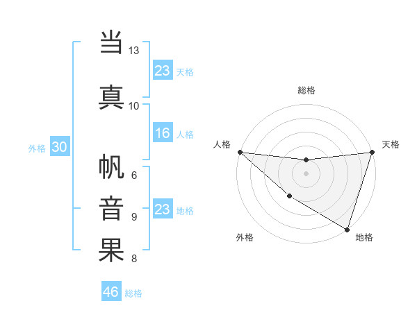 当真 帆音果さんを姓名の画数から五運を鑑定