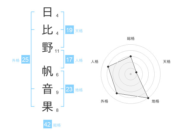 日比野 帆音果さんを姓名の画数から五運を鑑定