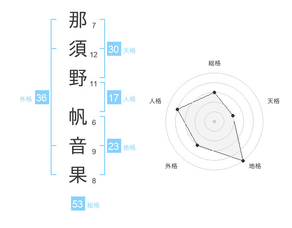 那須野 帆音果さんを姓名の画数から五運を鑑定