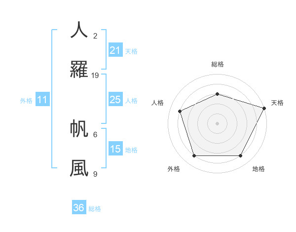 人羅 帆風さんの天格は21画の5点!
