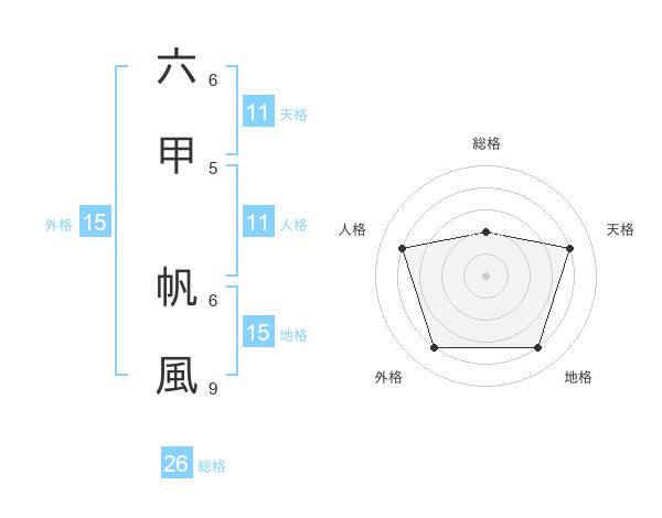 六甲 帆風さんの総格は26画の2点!