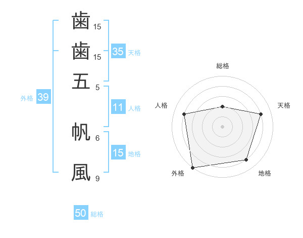 歯歯五 帆風さんの総格は50画の2点!