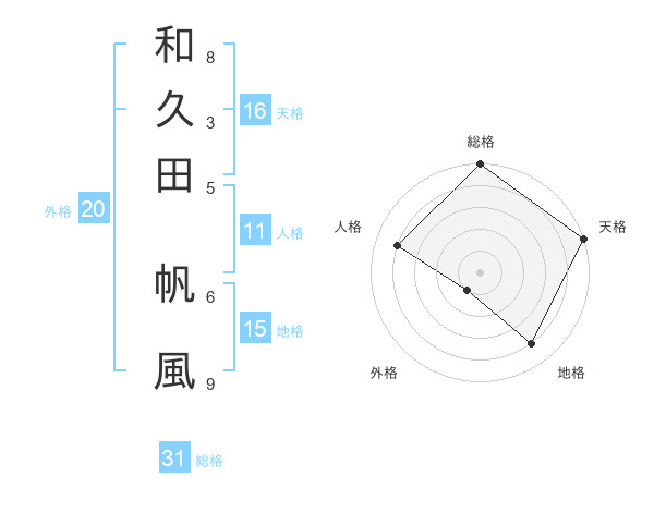 和久田 帆風さんを姓名の画数から五運を鑑定