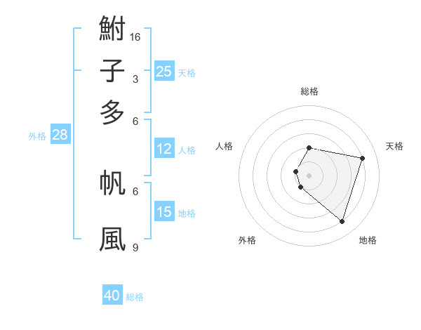 鮒子多 帆風さんを姓名の画数から五運を鑑定