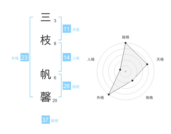 三枝 帆馨さんを姓名の画数から五運を鑑定