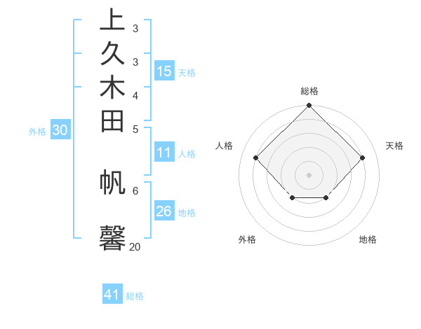 上久木田 帆馨さんを姓名の画数から五運を鑑定