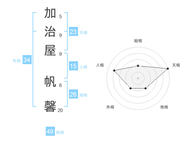 加治屋 帆馨さんを姓名の画数から五運を鑑定