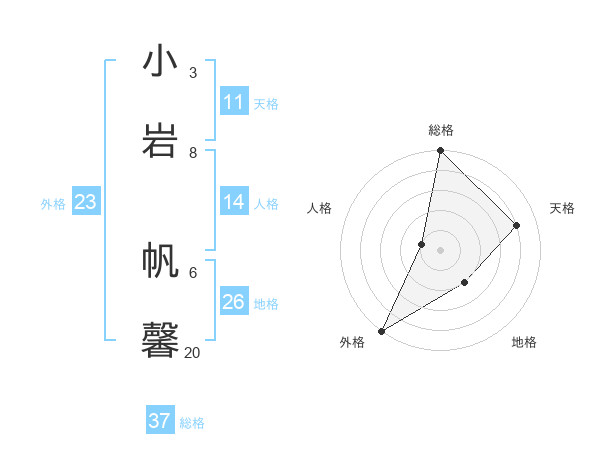 小岩 帆馨さんを姓名の画数から五運を鑑定