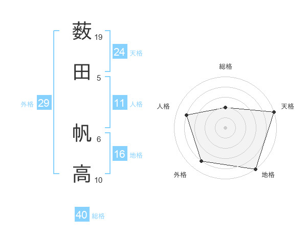 薮田 帆高さんの天格は24画の5点!