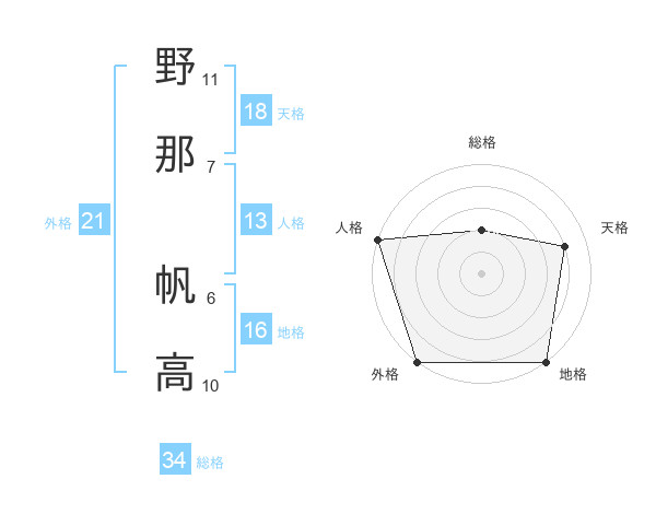 野那 帆高さんの外格は21画の5点!
