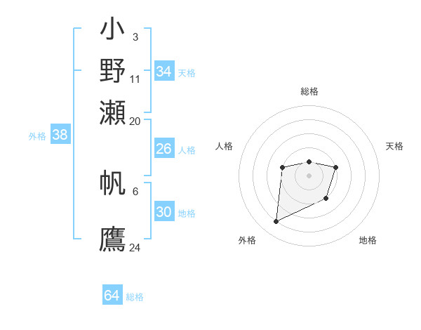 小野瀬 帆鷹さんを姓名の画数から五運を鑑定