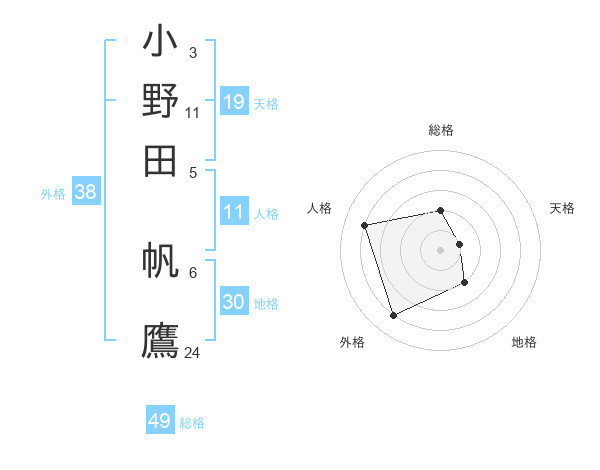 小野田 帆鷹さんの総格は49画の2点!