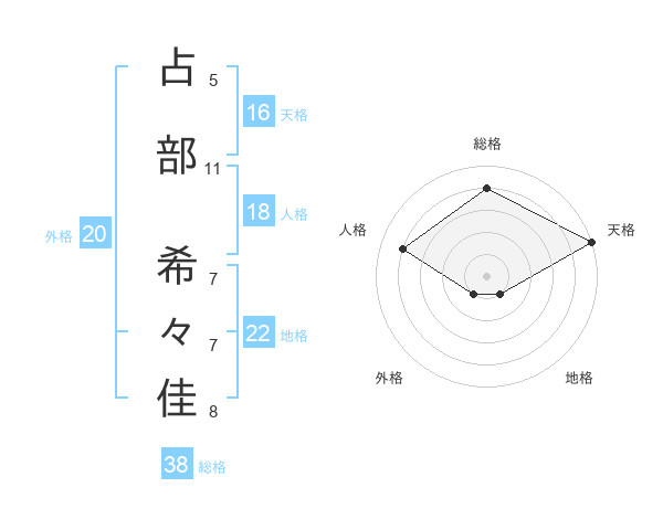 占部 希々佳さんを姓名の画数から五運を鑑定