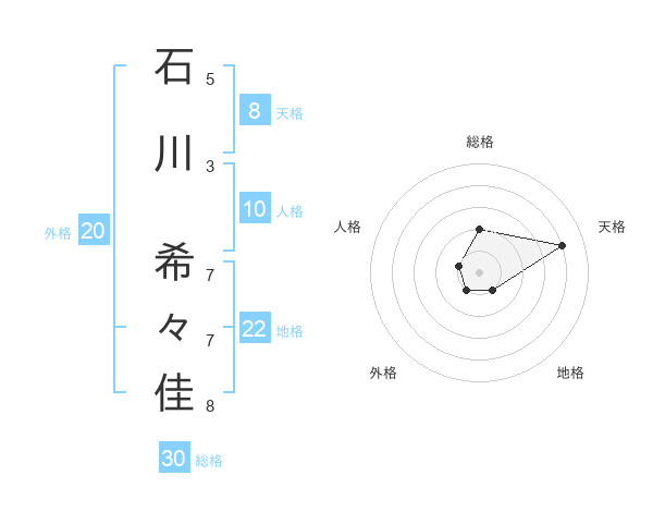 石川 希々佳さんを姓名の画数から五運を鑑定