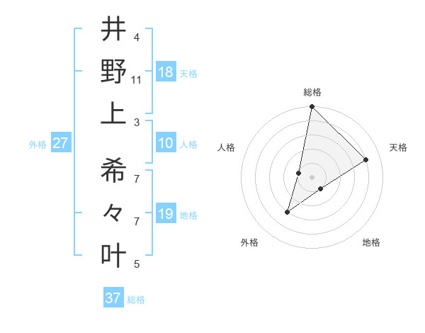 井野上 希々叶さんを姓名の画数から五運を鑑定