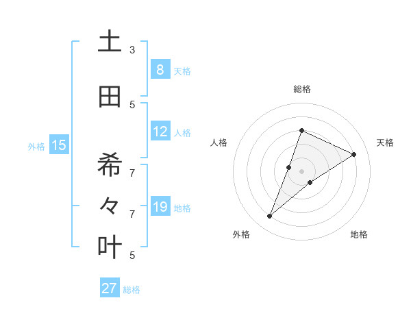 土田 希々叶さんを姓名の画数から五運を鑑定