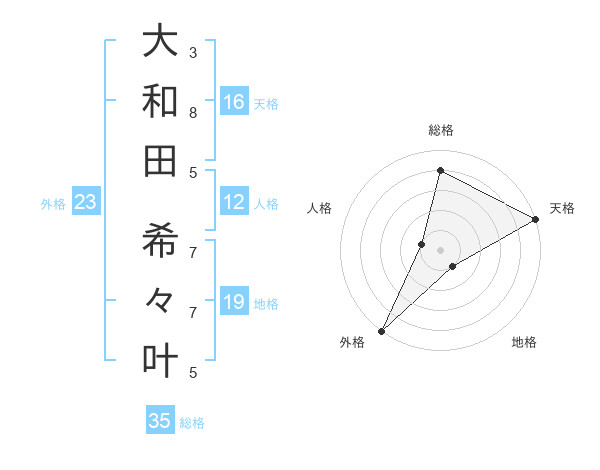 大和田 希々叶さんを姓名の画数から五運を鑑定
