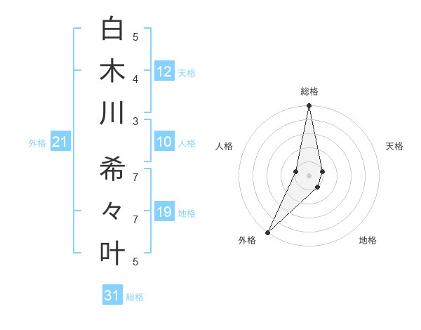 白木川 希々叶さんを姓名の画数から五運を鑑定