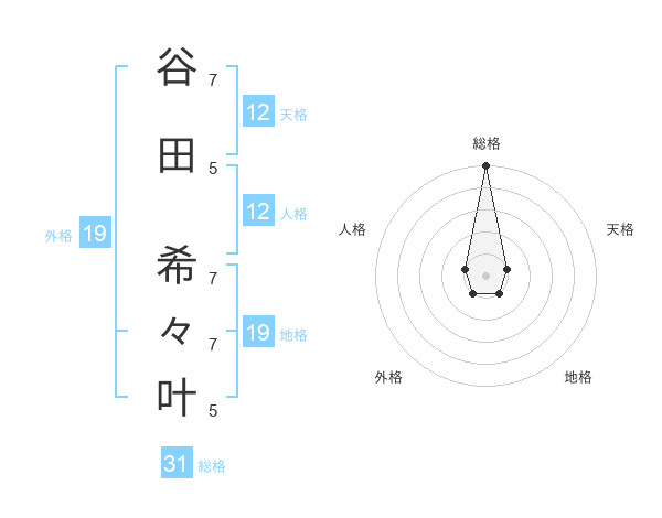 谷田 希々叶さんを姓名の画数から五運を鑑定