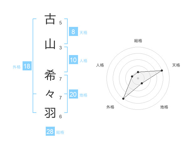古山 希々羽さんを姓名の画数から五運を鑑定