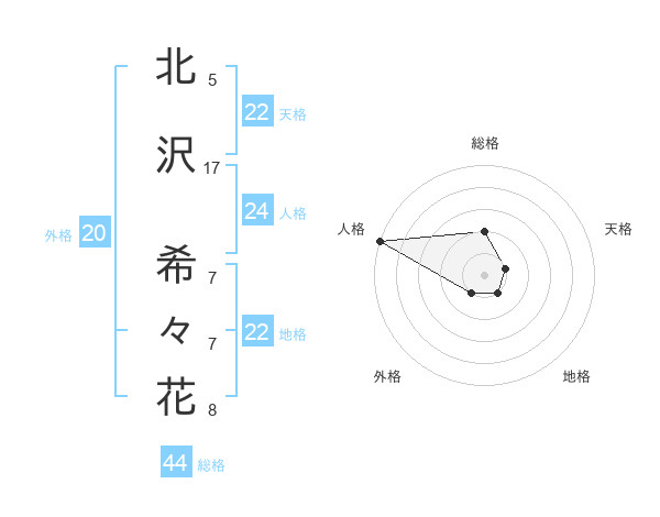 北沢 希々花さんを姓名の画数から五運を鑑定
