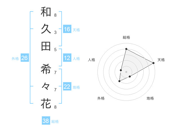 和久田 希々花さんを姓名の画数から五運を鑑定