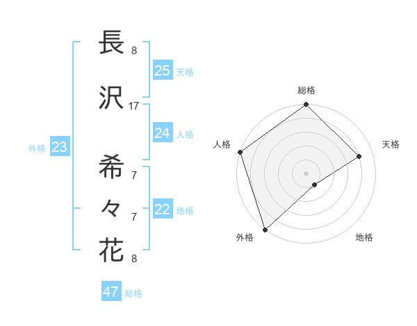 長沢 希々花さんの総格は47画の5点!
