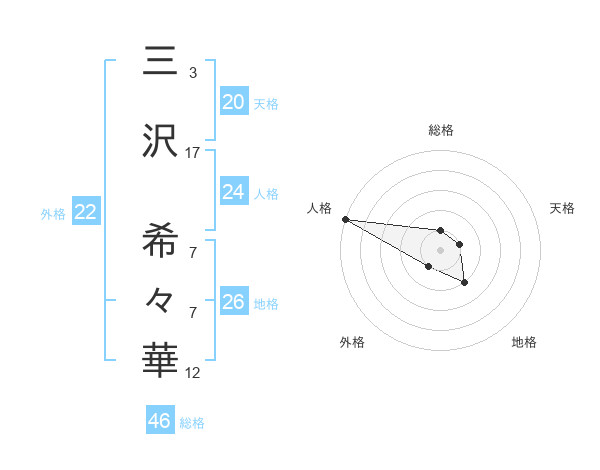 三沢 希々華さんを姓名の画数から五運を鑑定
