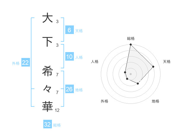 大下 希々華さんの総格は32画の5点!