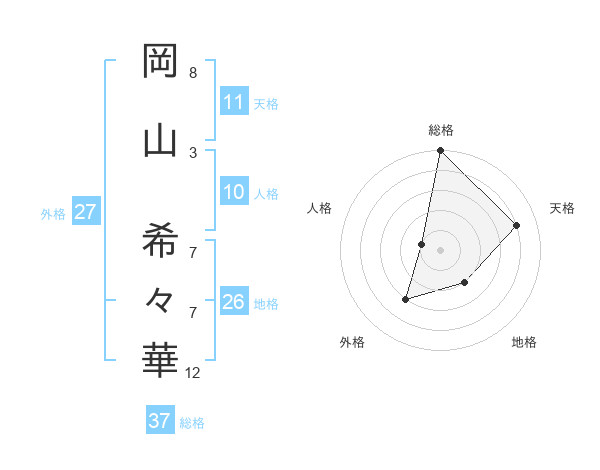岡山 希々華さんの総格は37画の5点!