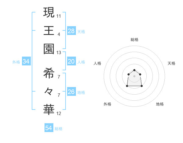 現王園 希々華さんを姓名の画数から五運を鑑定