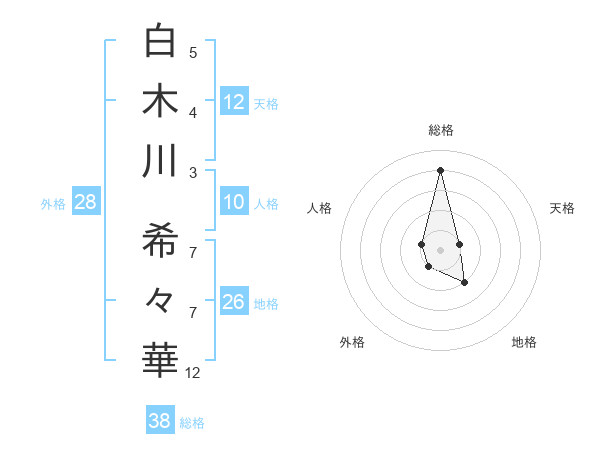 白木川 希々華さんを姓名の画数から五運を鑑定
