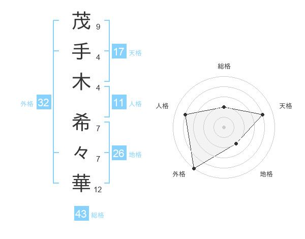 茂手木 希々華さんを姓名の画数から五運を鑑定