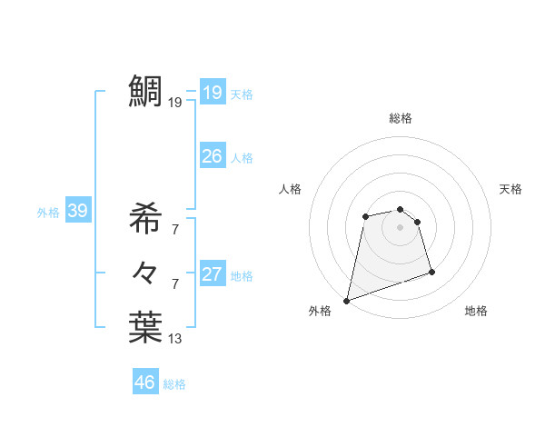 鯛 希々葉さんを姓名の画数から五運を鑑定
