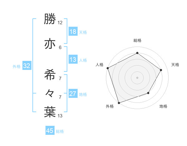 勝亦 希々葉さんの総格は45画の4点!