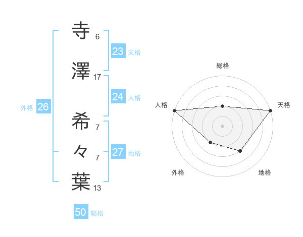 寺澤 希々葉さんを姓名の画数から五運を鑑定