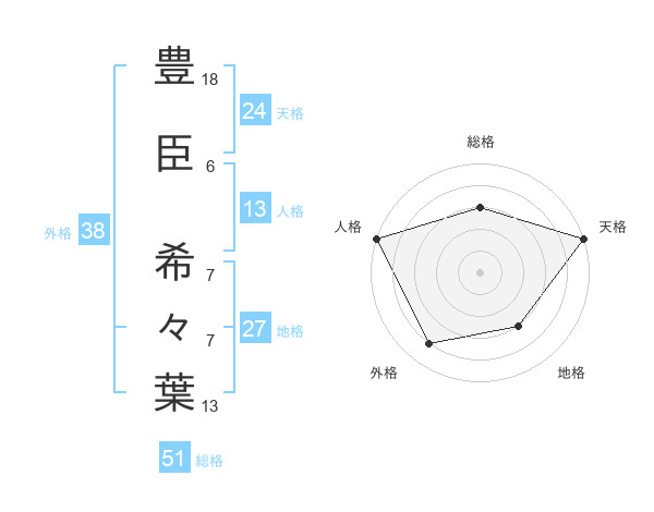 豊臣 希々葉さんを姓名の画数から五運を鑑定