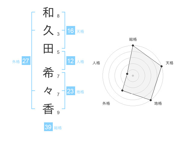 和久田 希々香さんの天格は16画の5点!