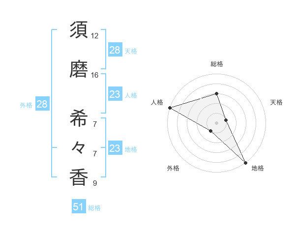 須磨 希々香さんの総格は51画の3点!