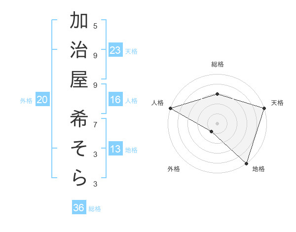 加治屋 希そらさんを姓名の画数から五運を鑑定