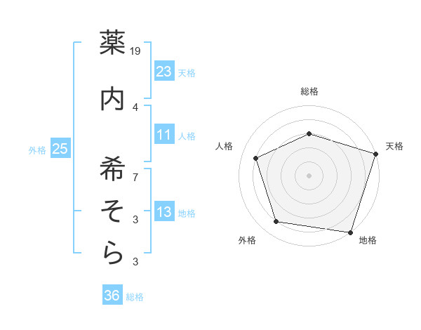 薬内 希そらさんの天格は23画の5点!