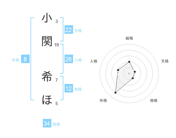 小関 希ほさんの外格は8画の4点!