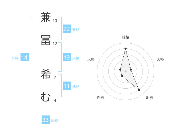 兼冨 希むさんを姓名の画数から五運を鑑定