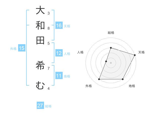 大和田 希むさんの天格は16画の5点!