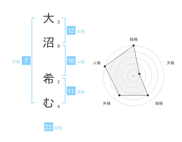 占い結果は姓名判断である以上、良い場合も悪い場合もありますが、決してお名前を誹謗中傷するものでなく、画数の自動計算によって得られたものです。また、本サイトの検索によって得られた鑑定結果で、第三者を誹謗中傷したり名誉を棄損するような行為を禁じます。