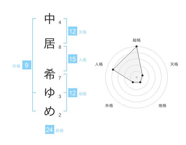 中居 希ゆめさんの総格は24画の5点!