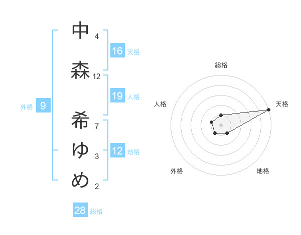 中森 希ゆめさんを姓名の画数から五運を鑑定