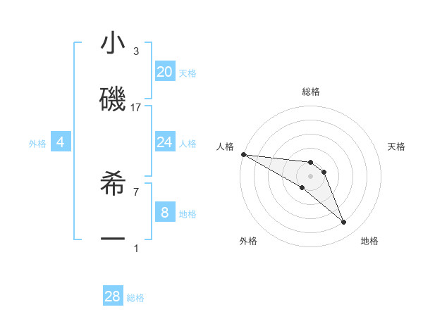 小磯 希一さんの総格は28画の1点!