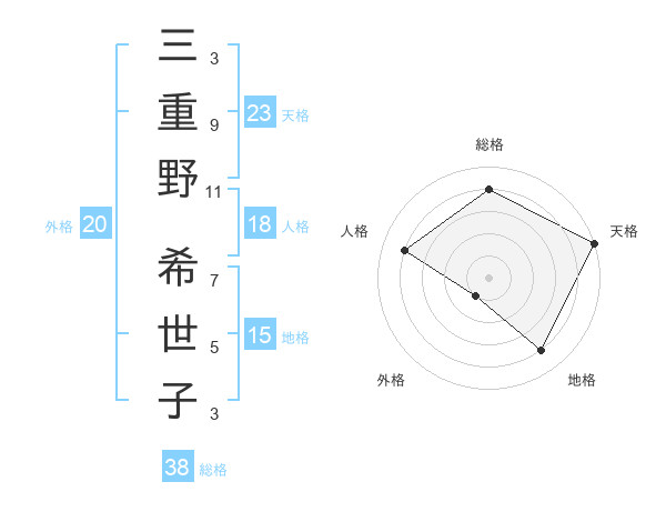 三重野 希世子さんを姓名の画数から五運を鑑定
