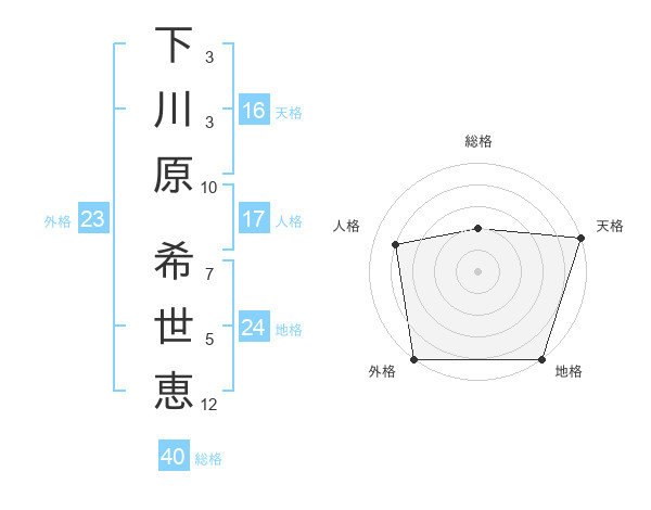 下川原 希世恵さんを姓名の画数から五運を鑑定